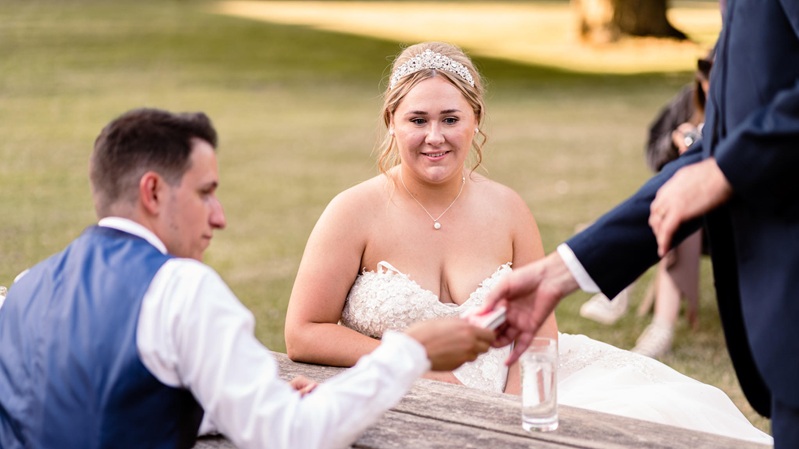 During the wedding breakfast there is always a lull between meal courses. Dave Royal discreetly steps in here to entertain between courses whilst your guests are waiting to be served.